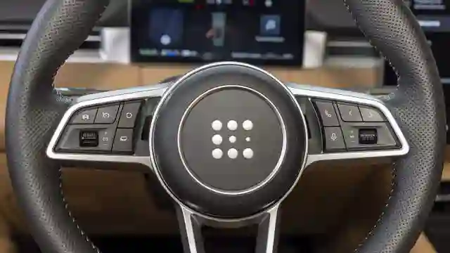 Из физических клавиш на центральной консоли уцелела лишь «аварийка». Физические кнопки сохранились и на спицах руля, форма которого теперь вызывает аналогии с Porsche. Видимо, у немецкого производителя спорткаров подсмотрели и положение кнопки запуска силовой установки справа.
